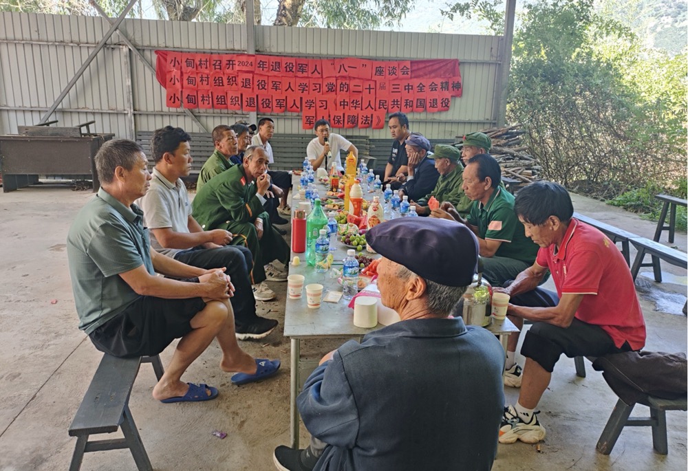 忆往昔峥嵘岁月稠,看今朝旖旎风光秀。为热烈庆祝中国人民解放军建军97周年,大力弘扬拥军优属、拥政爱民的光荣传统,为激励广大退伍军人退伍不褪色,永当排头兵,8月1日,小甸村委会组织召开2024年退役军人庆“八一”座谈会,小甸村“两委”成员、驻村工作队及全村在家退役军人参加座谈会。