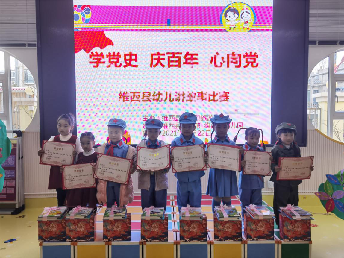 源远流长的红色经典文化,是历史长河中永久的瑰宝。红色故事是一座座丰碑,激励着一代又一代中华儿女的豪情和斗志。为弘扬革命先烈丰功伟绩,继承革命先辈的优良传统,培养幼儿爱党、爱国、爱社会主义的朴素情感,丰富幼儿文化生活、提高幼儿的语言表达能力,结合党史学习教育,12月22日,由维西县文化和旅游局主办、维西县图书馆和维西县幼儿园承办的“学党史 庆百年 心向党”幼儿讲故事比赛的决赛在幼儿园报告厅顺利举行。