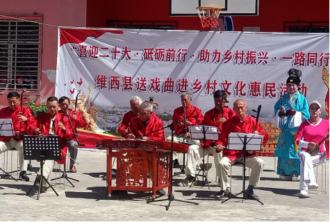 为喜迎党的二十大胜利召开,近日,由维西县委宣传部、维西县文化和旅游局主办,维西县文化馆承办,大词戏古乐团、傈山谣文化传媒有限公司协办的2022年度文化惠民“乡村振兴、一路同行”“戏曲进农村”第一批文艺演出最后两场活动在康普乡阿尼比村和齐洛村落下帷幕。为了解决广大农民看戏难的问题,本次“戏曲进农村”第一批演出活动涉及我县的3个乡镇,共计18个村,让当地群众在家门口就能近距离地欣赏以戏曲为主的文化盛宴。