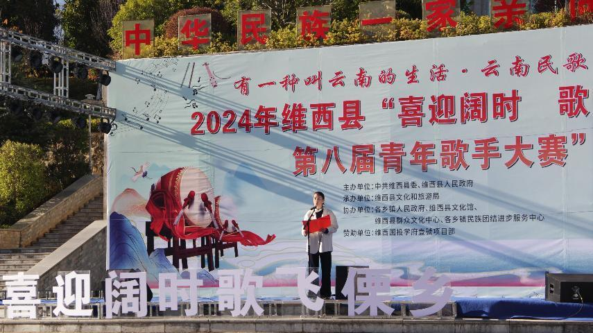 为认真贯彻落实习近平文化思想,传承和弘扬中华优秀传统文化,唱响时代主旋律,铸牢中华民族共同体意识;同时,为进一步培育和弘扬社会主义核心价值观,推动精神文明建设进程,繁荣和促进我县青年文化艺术事业,丰富广大青年文化生活,激发青年活力,选拔艺术优秀人才、展示青年艺术风采。2024年11月29日-11月30日,维西县隆重举办了有一种叫云南的生活.云南民歌大家唱2024年维西县“喜迎阔时•歌飞傈乡暨第八届青年歌手大赛”。