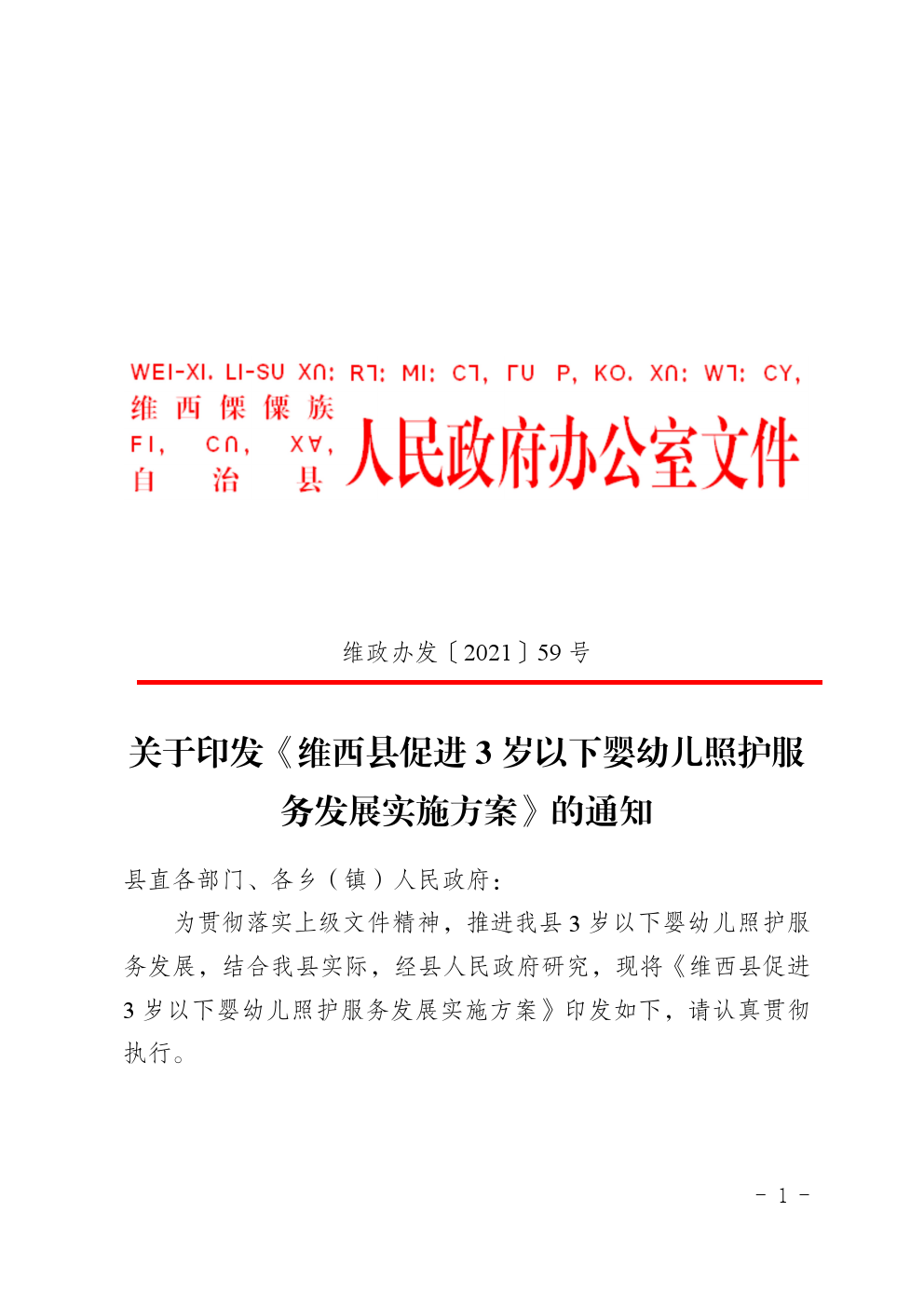 关于印发维西县3岁以下婴幼儿照护服务发展实施方案的通知