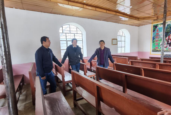 3月15日,县委副书记和俊昌、驻村工作队总队长赵禄华到永春乡庆福村草坝子基督教堂调研,永春乡党委主要领导陪同调研。