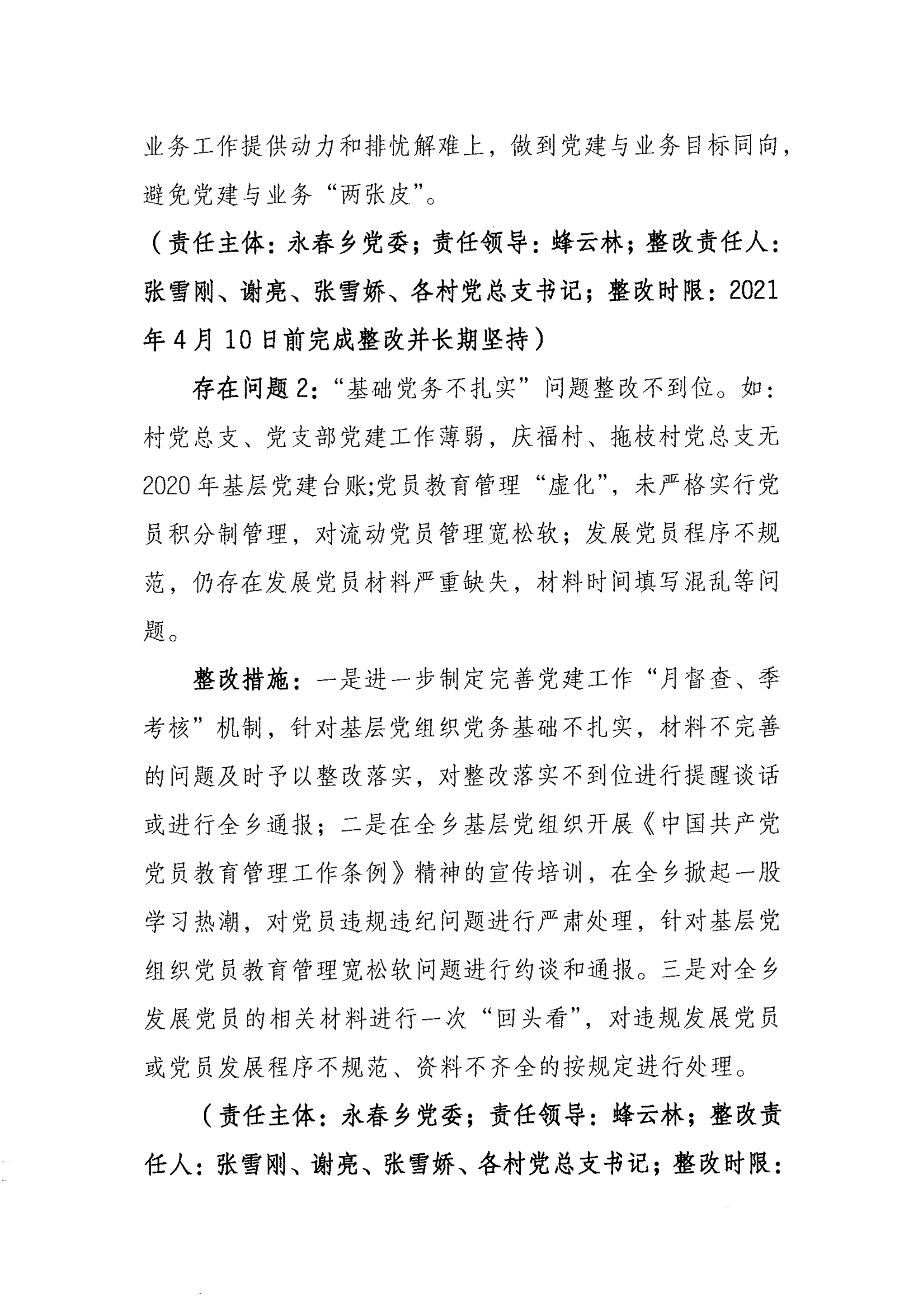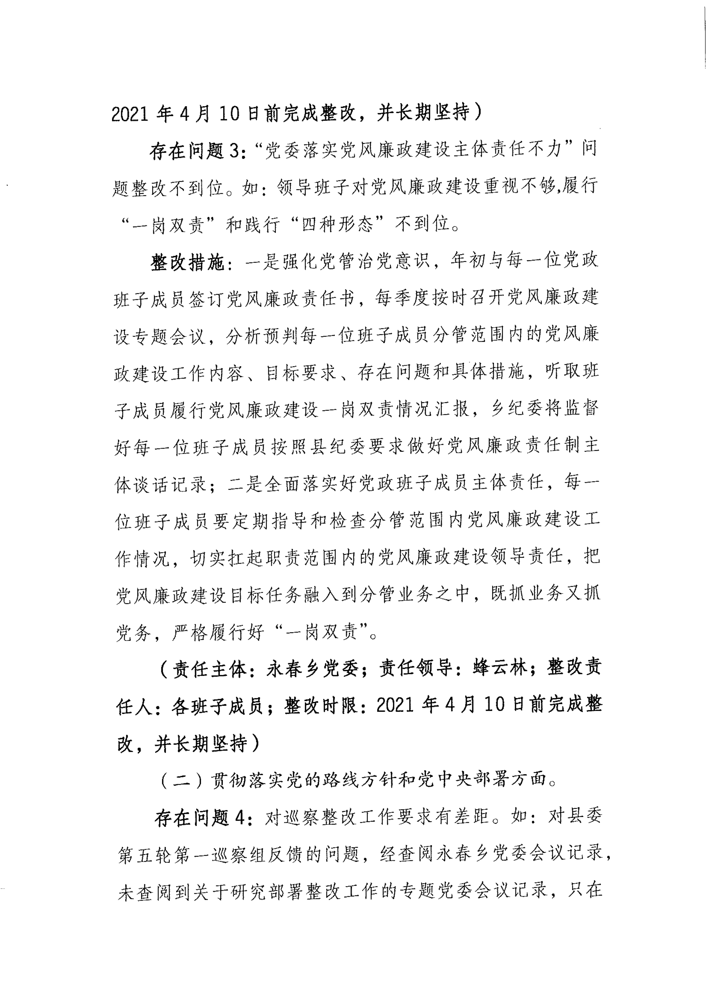 【永春乡】永春乡关于中共维西县委第十三轮第五巡察组对永春乡党委巡察“回头看”情况反馈意见发现问题整改方案