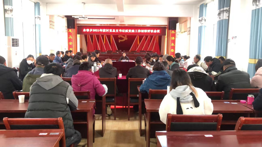 为全面贯彻落实党的十九届六中全会精神,落实新时代党的组织路线,以高质量党建引领高质量发展,2022年1月20日上午,永春乡召开2021年度党总支书记抓党建述职评议会议,会议由乡党委书记徐丽芬主持,永春乡班子成员、六个村党总支书记、农村小支部书记、“两新”支部书记、各站所长、机关支部党员(农村小支部第一书记)共计50余人参会