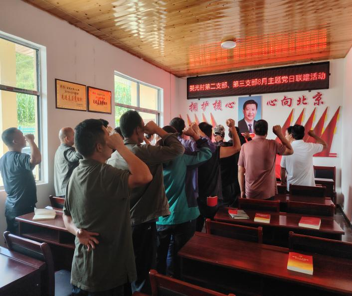 为深入学习贯彻党的二十大精神,深化党建共建模式,着力构建城乡基层党组织互帮互助常态化、长效化机制,努力构建资源共享、优势互补、互相促进、共同提高的党建工作新格局,永春乡美光村第二支部、第三支部开展8月主题党日联建活动,县级领导、第一书记、总支委员、支部党员共计22人参加。