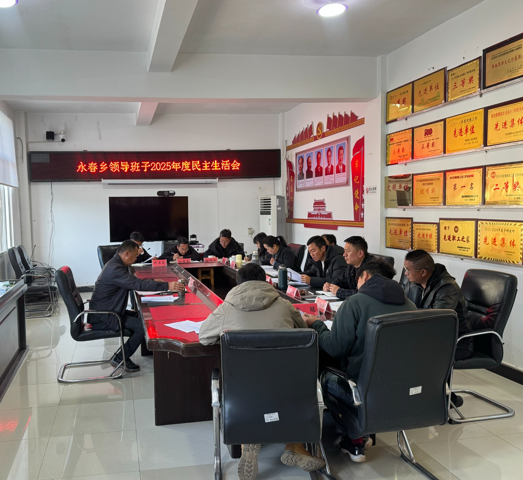 2026年2月8日上午永春乡领导班子召开2025年度民主生活会。县委第二督导组同志到会指导并点评讲话,乡党委书记主持会议,全体班子成员参加会议。