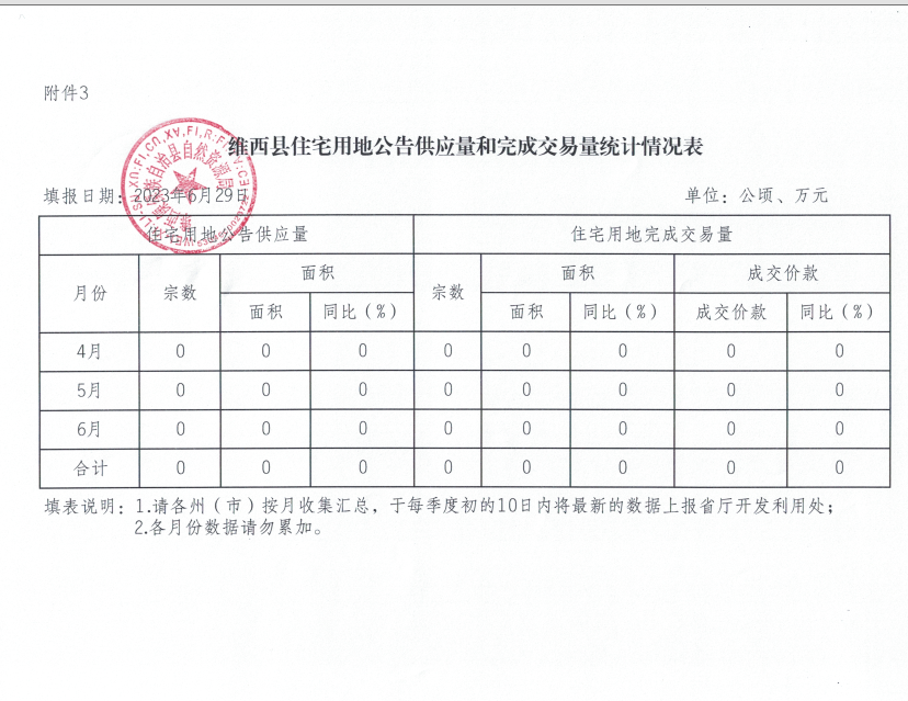 维西县2023年第二季度存量住宅用地信息表