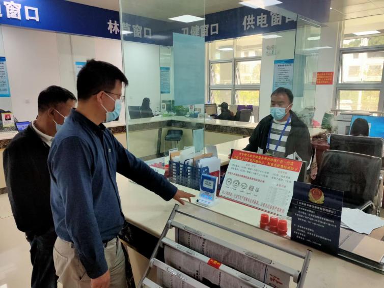 在县级政务服务1、2号大厅,副县长李欣龙实地查看了进驻窗口部门的办公环境、认真了解各部门工作开展情况、人员配备、办理事项以及工作量等相关情况,并详细询问了市场监督管理局、教育助学贷款、就业局等窗口工作人员审批服务事项、办事流程、办理时限和所需材料等情况,并同办理业务的群众进行交谈,现场了解群众对新政务大厅各类办理工作的感受和意见。同时现场使用了医保自助服务终端及迪庆州人社自助服务一体机,切身体验自助办事的方便与快捷。