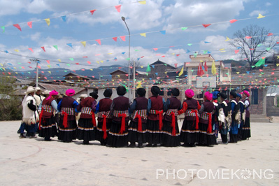 在云南省迪庆藏族自治州维西傈僳自治县保和镇永春村民委员会,有一个村庄叫拉哈村(纳西语叫“贝达”),这里居住的都是纳西人。每年一到火把节,村里的乡亲们如过春节一般忙碌起来,家家拿出一捆捆的干柴堆放到村子活动场地中心,由几个壮汉扎起一座如似宝塔的火把。火把上插满了象征五谷丰登的玉米包、谷穗、向日葵等农作物。到下午,全村人各自回到家里,女人们做节日晚餐,男人们扎小火把,吃过晚饭,等到太阳下西山,男女老少穿上盛装,以老祖宗沿袭下来的习俗,从自己家的火塘上点着明亮的小火把,走向活动场地,围着扎好的火把堆,用手中的火种点燃高高的火把,熊熊燃烧起的火光照亮了周围整个场地。小孩们欢呼着在场地上乱窜,大人们在德高望重的老人带领下,唱“阿勒”歌,跳“阿勒“,演”“苍八”戏,寓示村里人丁兴旺,五谷丰登。