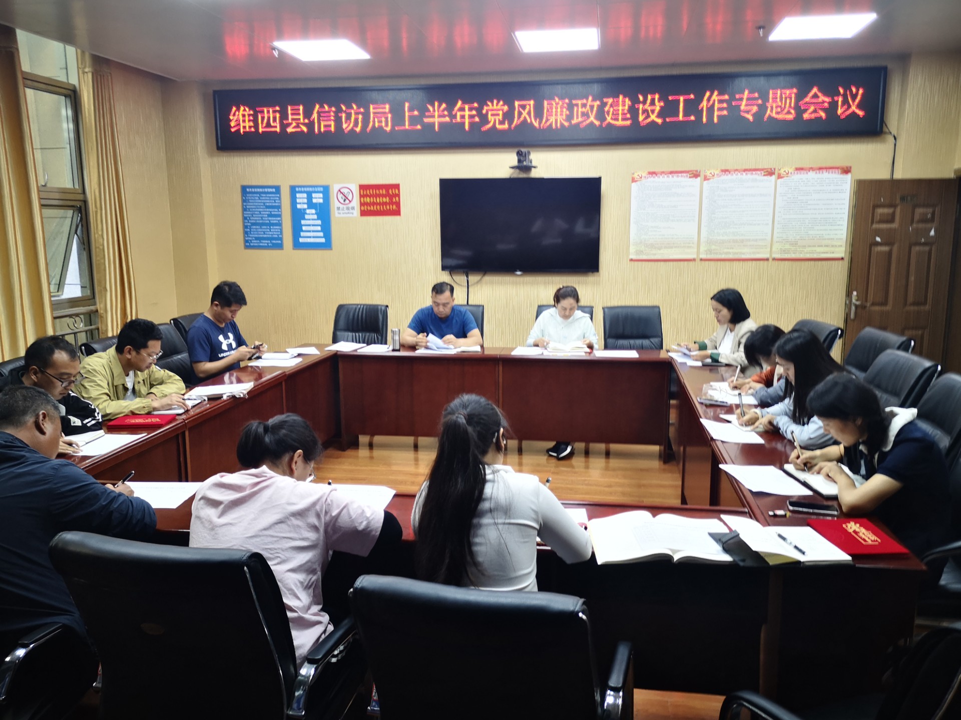 为深入学习贯彻党的二十大精神和习近平总书记关于全面从严治党重要讲话和重要指示批示精神,在县委、县政府的坚强领导下,以习近平新时代中国特色社会主义思想为指导,坚持标本兼治、综合治理、惩防并举、注重预防的方针,结合工作任务要求和职权运行特点,注重日常教育提醒和监督管理,不断把全面从严治党和反腐倡廉引向深入。7月24日,维西县信访局召开2024年上半年党风廉政建设工作专题会,派驻纪检组组长、县信访局全体干部职工参加了此次会议。