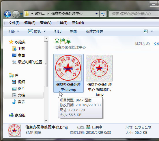 1.将扫描得到的印章图像以“印章全称_扫描原件”为文件名保存到以“印章全称”为名的文件夹中,格式为BMP图片文件。(注:在制作过程中仅只对扫描件图片做裁剪和尺寸大小的修改处理,而不能对颜色和图案进行其它处理,如抠图、上色等处理都是不允许进行的。)