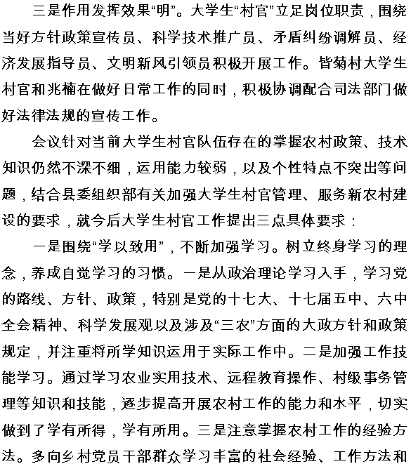 促进角色转变 发挥大学生村官职能作用