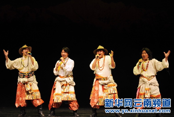 11月15日,在台北市孙中山纪念馆大会堂,云南迪庆藏族自治州歌舞团的演员演唱民族歌曲。