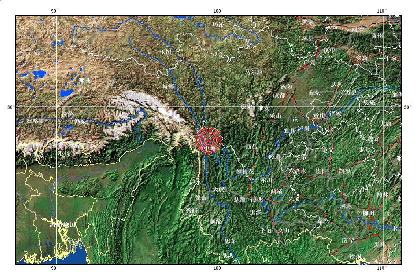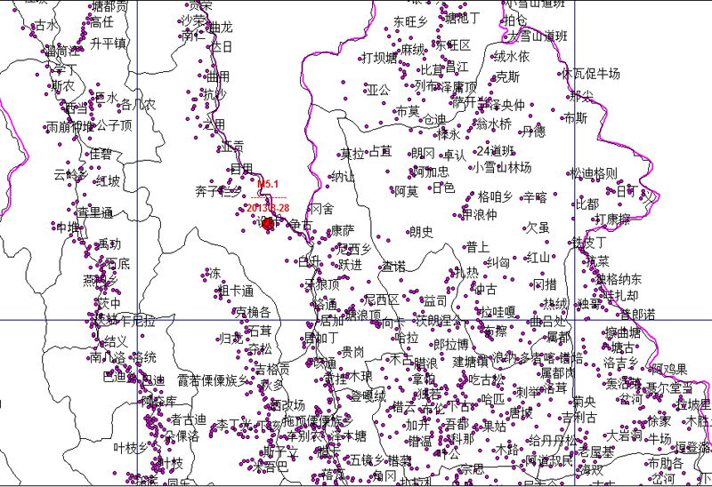 另据迪庆州地震局消息:据中国地震台网正式测定,2013年08月28日04时44分在四川省甘孜藏族自治州得荣县、云南省迪庆藏族自治州德钦县、香格里拉县交界地区(北纬28.2度,东经99.3度)发生5.1级地震,震源深度9千米。目前还未接到房屋倒塌和人员伤亡的报告。截止到06时53分,共发生余震19次,其中,1.0-1.9级8次,2.0-2.9级6次,3.0-3.9级5次,最大余震3.4级。