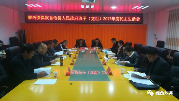 2018年2月7日上午9时,维西县人民政府召开2017年度领导班子(党组)民主生活会,会议由余春桥同志主持,在家政府班子(党组)成员11位同志参加会议,县委派出督导组全程参与相关指导。