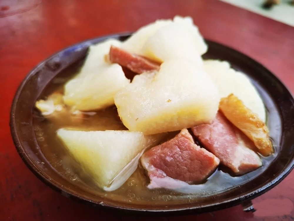 维西本地糯山药吃法:山药炖土鸡、山药煮火腿、生吃山药、烤山药、山药炒青笋、山药胡萝卜排骨汤。山药肉质细嫩,含有黏蛋白、淀粉酶、皂苷、游离氨基酸、多酚氧化酶、维生素B1等物质,有利于脾胃消化吸收功能,有着健脾养胃、益肺止咳、降低血糖、防肥胖、补肾虚、预防心血管疾病、增强骨骼等功效,是一味平补脾胃的药食两用保健佳品。