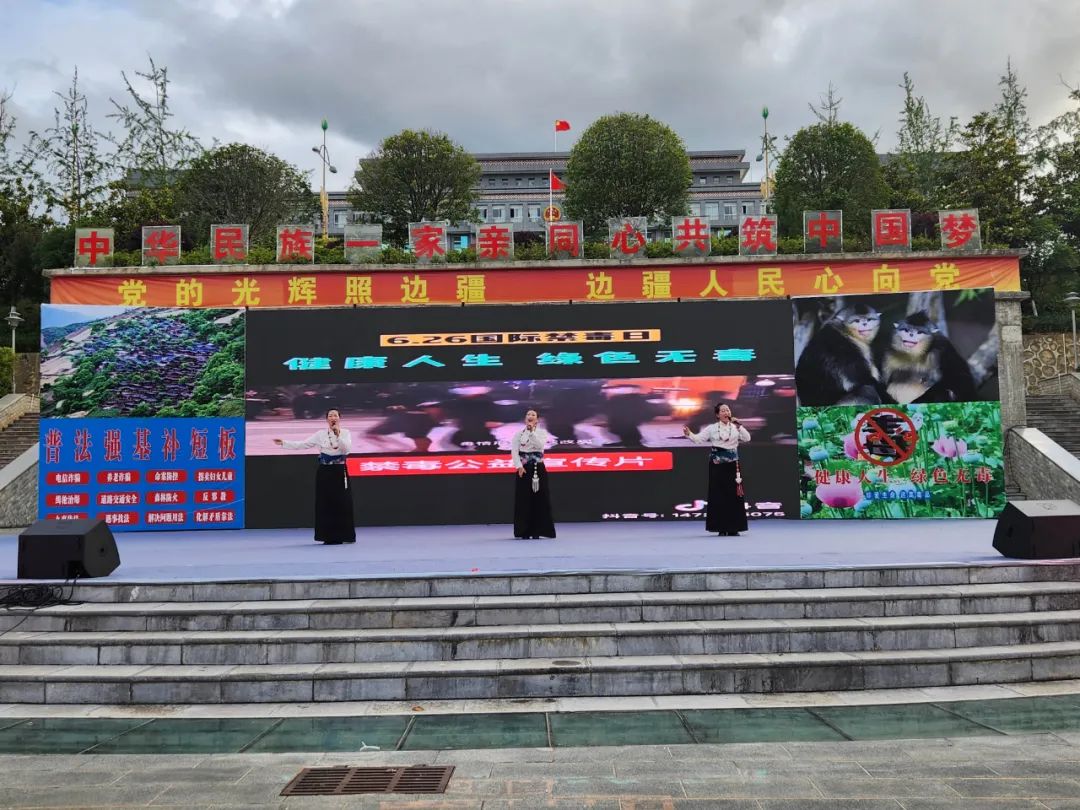 活动以维西县传统民族节目、非遗文化《阿尺木刮》开场,吸引广大人民群众眼球,同时在户外电子投屏滚动播放“绿色人生 健康无毒”为主题的禁毒公益宣传片,营造了浓厚宣传氛围。公安民警、禁毒志愿者将集合我县禁毒、命案防控、电信网络诈骗、森林防火等知识的宣传册发放到参加活动的学生、公职人员、行业代表及人民群众手中,并对禁毒宣传展板、毒品仿真模型进行详细介绍,主持人结合主题宣传内容组织开展禁毒知识竞答环节,群众积极参与,反响热烈。最后,一首歌颂禁毒公安民警的歌曲《一路向前》掀起活动高潮。