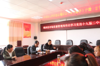 为全面贯彻落实中共维西县委关于各单位部门认真传达学习党的十九届二中全会精神、将全会精神传达到广大党员干部,迅速把思想和认识统一到党的十九届二中全会精神的要求。维西县市场监督管理局于2018年1月30日上午组织干部职工召开了党的十九届二中全会精神专题学习会议。会议由局党委委员付文辉同志主持,市场监管局20多名在家干部职工参加了会议。首先,党委委员付文辉同志原文传达了《中共维西县委办公室关于认真传达学...