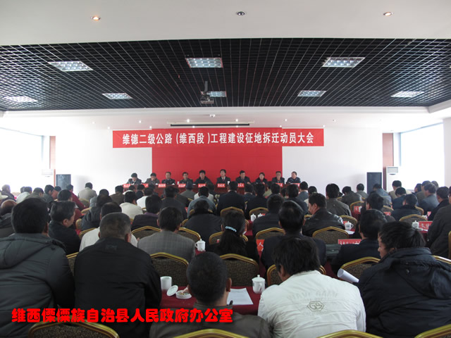 根据州委、州人民政府的工作部署,为进一步做好维德二级公路(维西段)工程建设征地拆迁工作,明确各乡镇、各有关部门的职责,圆满完成维德二级公路工程建设的征地拆迁与补偿兑现工作,保障维德二级公路工程建设的稳步推进,2009年12月7日,我县召开了维德二级公路(维西段)工程建设征地拆迁动员大会。县委副书记、县人民政府县长,县委常委、县委副书记张志宏同志,县委常委、县人民政府常务副县长徐绍文同志,县人武部部...