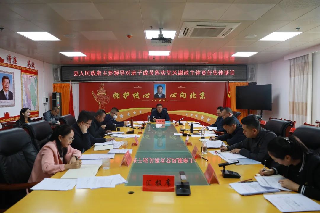 6月12日,县委副书记、县长黄龙新就班子成员落实党风廉政主体责任进行集体谈话。黄龙新指出,主动抓好党风廉政主体责任落实,是执行党章规定、落实中央部署的实际行动,也是推动全县政府系统反腐败工作的重要举措。全体政府班子成员要深刻认识党风廉政建设和反腐败工作面临的严峻形势,进一步增强全面从严治党的政治自觉,认真执行“一岗双责”各项要求,切实发挥表率示范作用,真正做到全面从严治党和政府工作同研究、同部署、...