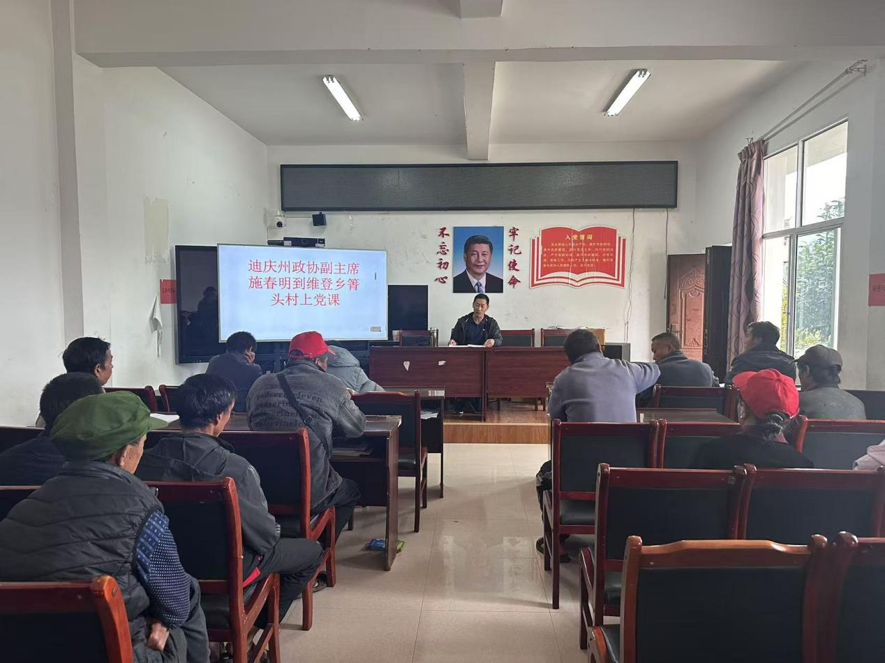 为深入贯彻落实党的二十届三中全会精神,推动全会精神在箐头村落地生根,2024年10月23日迪庆州政协副主席施春明深入挂钩村,为当地党员干部带来了一堂生动且深刻的二十届三中全会精神专题党课。