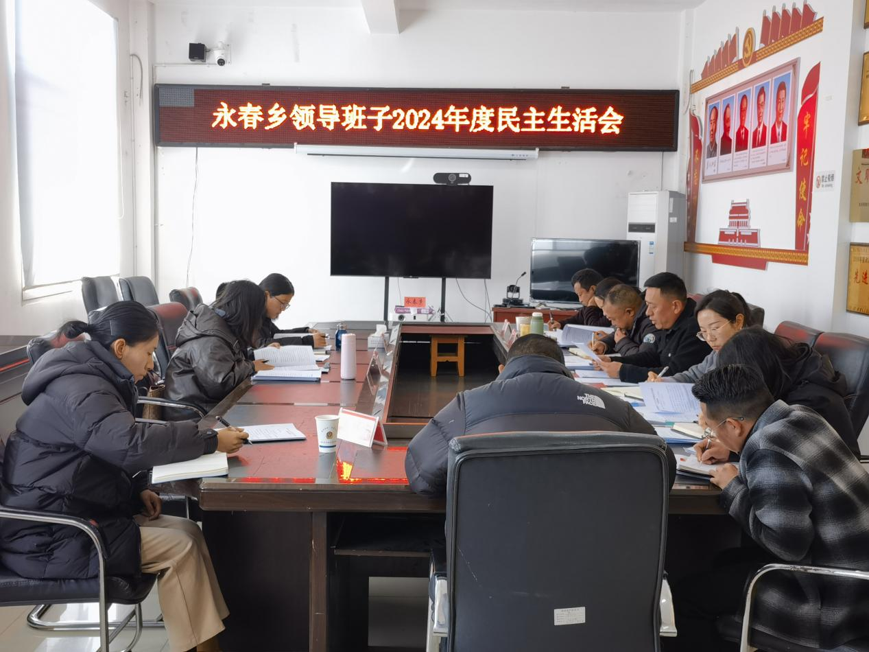 1月20日,永春乡召开2024年度领导班子民主生活会。县委第2督导组组长周玲、督导组组员丰琳琳到会指导。永春乡党委副书记、乡长张雪刚主持会议。