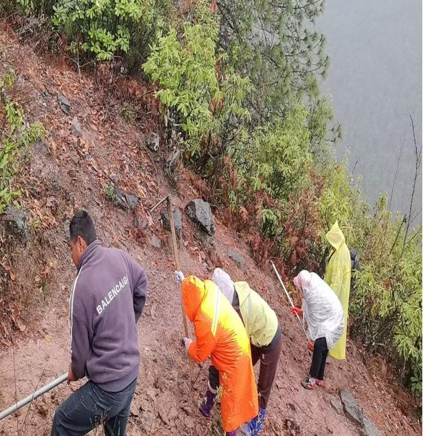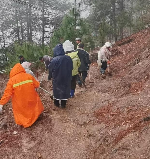 发挥个人特长,紧密协同配合。在作业过程中,党员与护林员紧密配合,展现出高度的默契。党员发挥组织协调能力,及时调配工具,保障施工效率;护林员则利用专业知识,对可能出现的滑坡、泥石流隐患点进行标记,提醒村民注意防范,并在挖掘排水沟时,注意保护周边植被根系,防止水土流失。