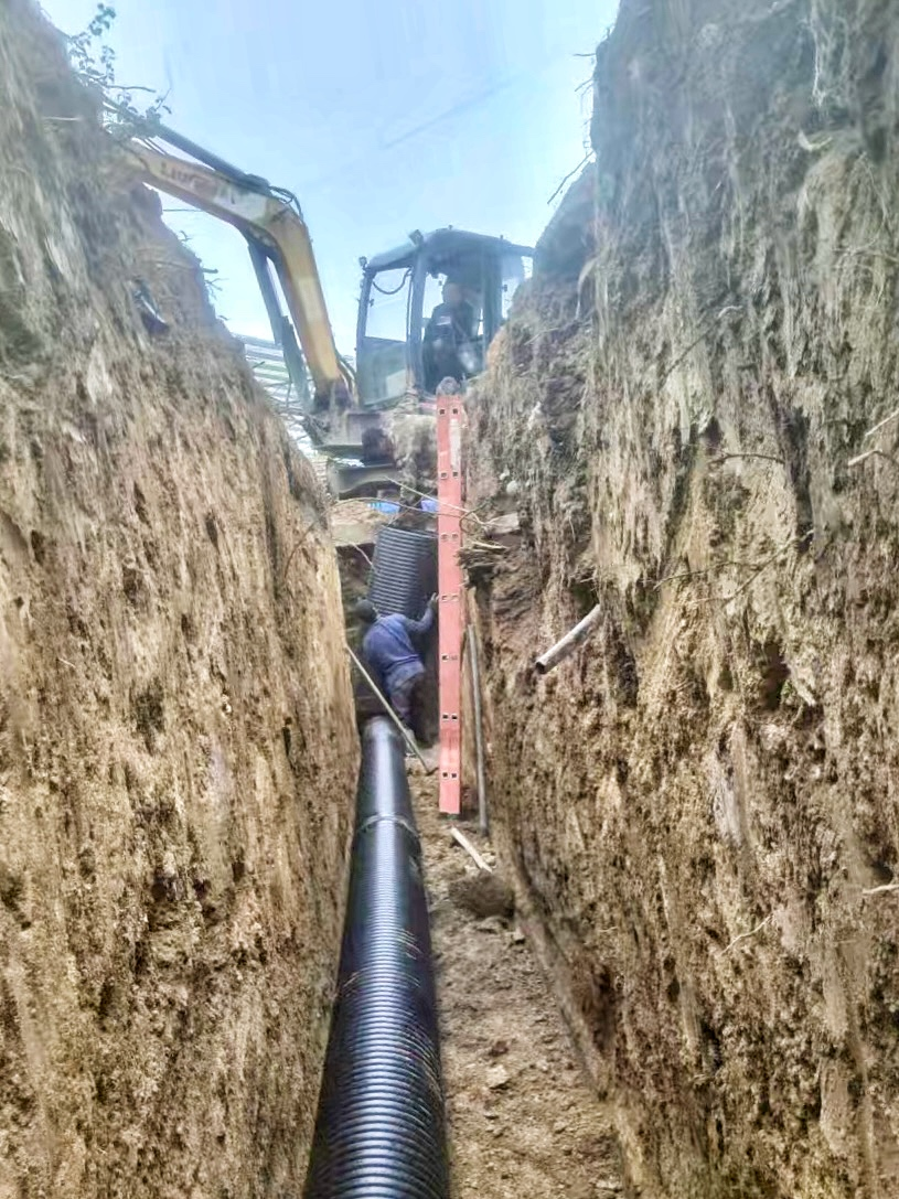 经过连续作业,随着挖掘机开挖沟渠,排污井堵塞物被一点一点疏通、清运、冲刷,并使用新管道替换损坏管道,新铺设排污管道60余米,同时对排水沟路面进行重新硬化,一项项工作有序推进,有效解决了群众排水、排污的“堵心事”,管道通畅了,环境卫生改善了,村民也舒心了。