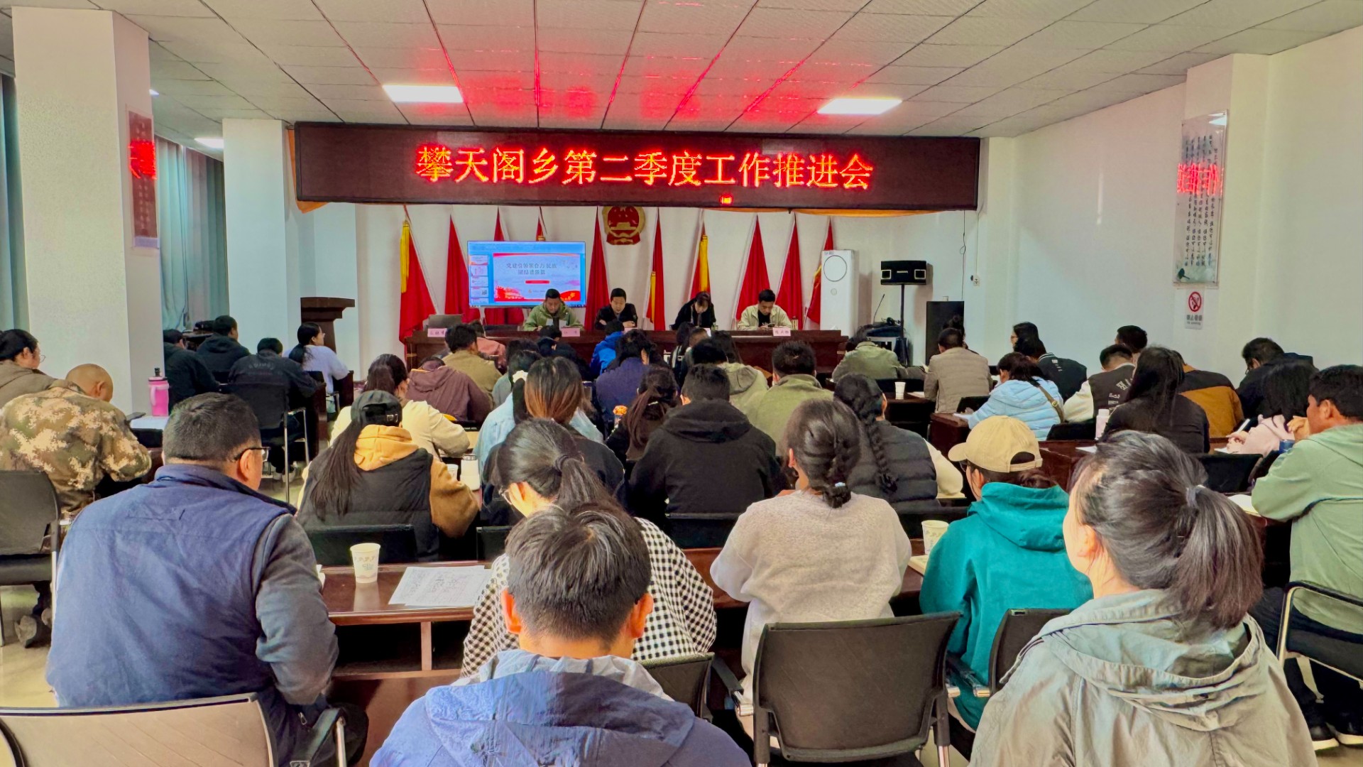 5月7日上午,攀天阁乡召开第二季度工作推进会,乡党政领导班子成员、村“两委”主要负责人、驻村工作队长、县驻乡各单位负责人等参加会议。