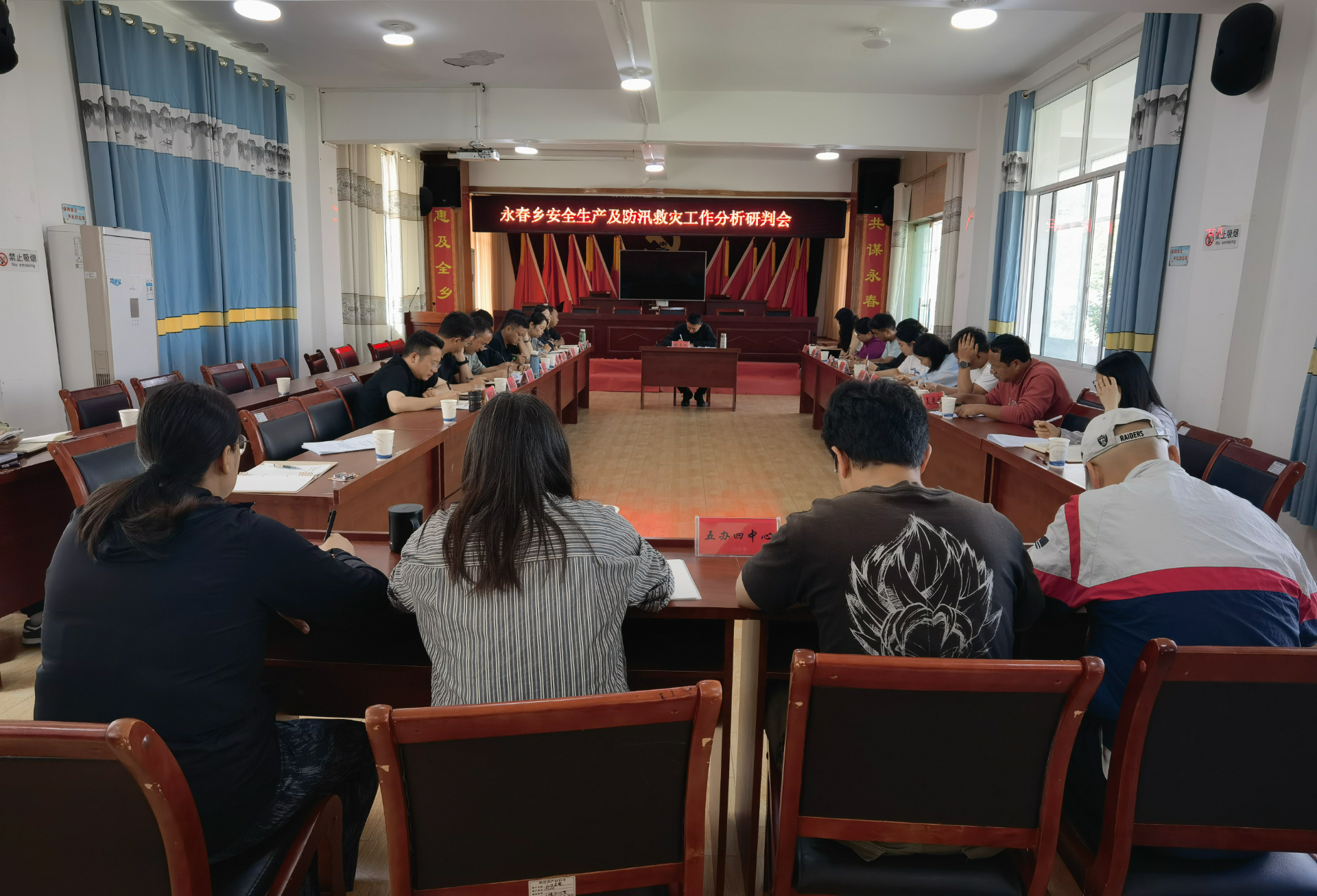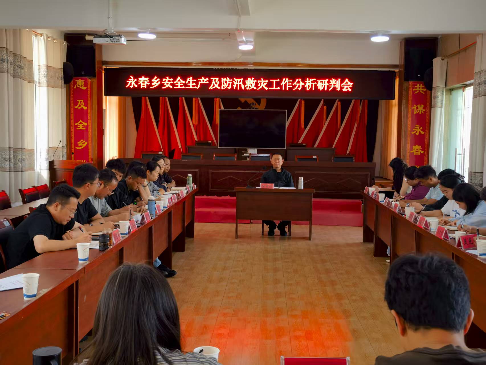 为进一步强化安全生产工作,有效防范和遏制各类安全事故发生,2025年7月14日上午,永春乡组织召开了安全生产及防汛救灾工作分析研判会暨第三季度安全生产工作会议。会议由分管安全生产副乡长主持,乡党政班子成员、乡五办四中心负责人、各村负责人以及永春派出所、永春中心校、永春卫生院负责人参加会议。