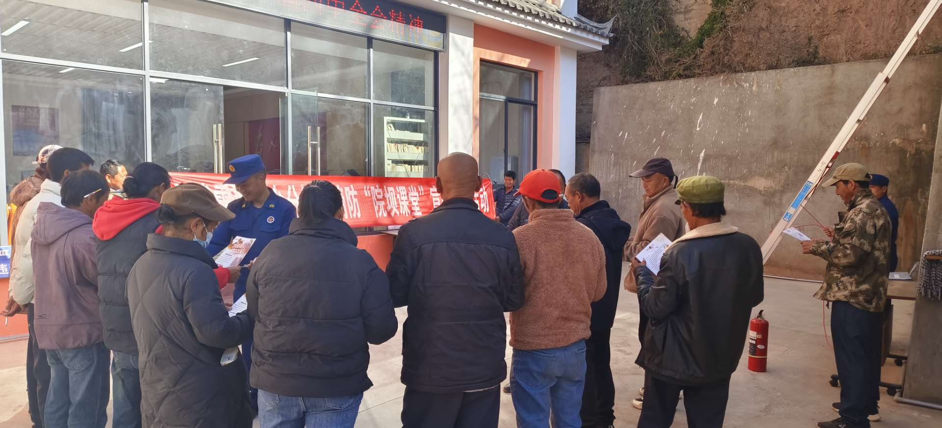 活动现场还设置了隐患排查互动环节,授课人员联合村网格员、安全志愿者,针对村民提出的“厨房燃气泄漏如何处理”“老旧房屋线路改造注意事项”等问题逐一解答,并对村委会周边商铺、村民自建房开展“体检式”排查,现场指出私拉乱接电线、消防通道堆放杂物等隐患,指导当事人及时整改,形成“宣讲—答疑—整改”的闭环模式。同时,工作人员向参与群众发放消防宣传手册、安全提示海报等资料60余份,依托村级微信群推送消防科普视频,构建“线下课堂+线上延伸”的宣传矩阵,进一步扩大知识覆盖面。
