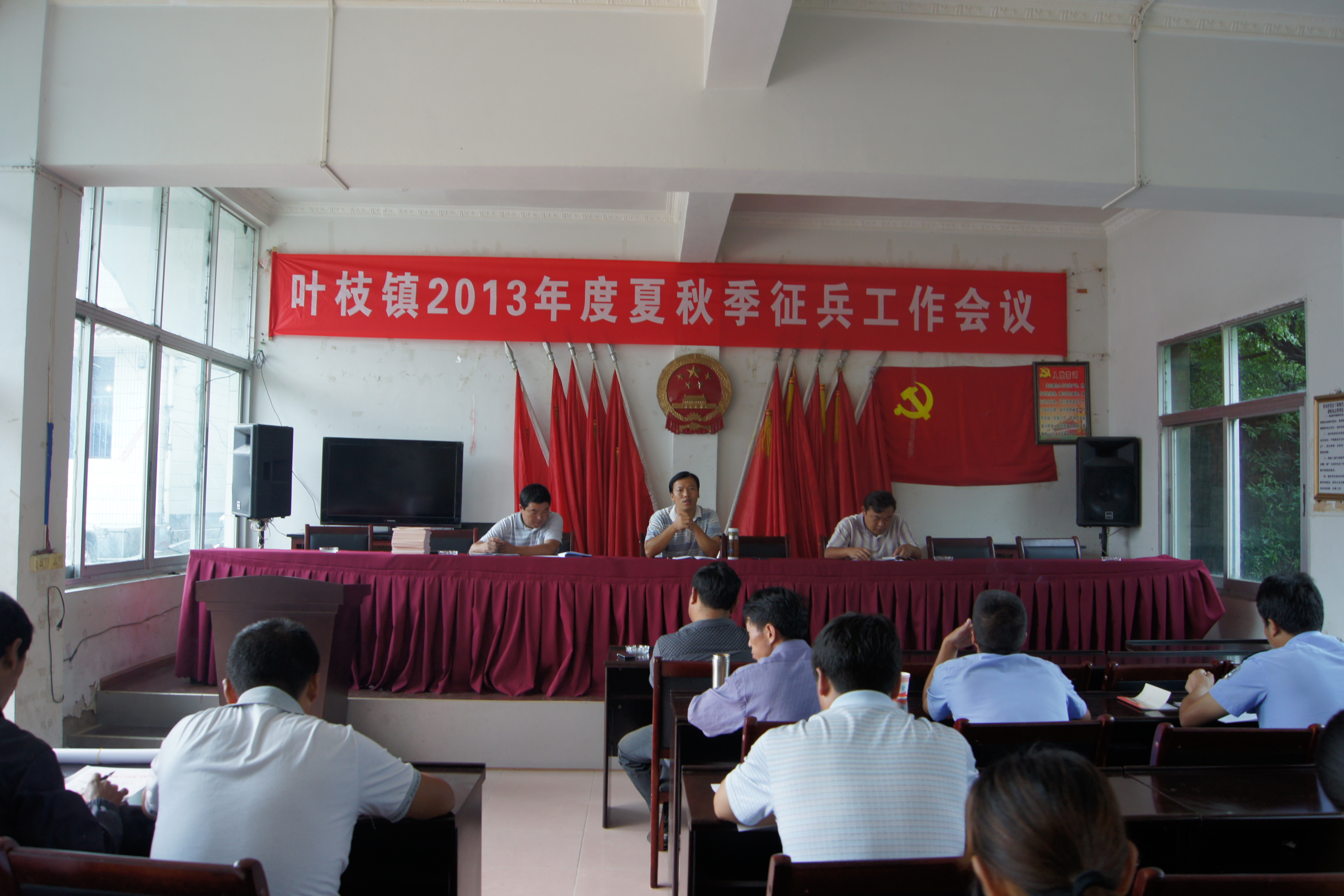 叶枝镇征兵办公室于7月24日在叶枝镇会议室组织召开了2013年全国征兵宣传工作启动会。镇人民政府镇长、镇党委副书记、镇武装部部长分别就我镇的征兵工作做了动员讲话。会议认真传达学习了维征[2013]7号维征[2013]6号介绍了今年征兵工作的形势政策,就如何抓好今年征兵宣传工作的落实提出了意见,并成立了以镇长为组长的征兵工作领导小组。会议强调,要充分认清当前征兵工作面临的形势任务,以对国防和军队建设...