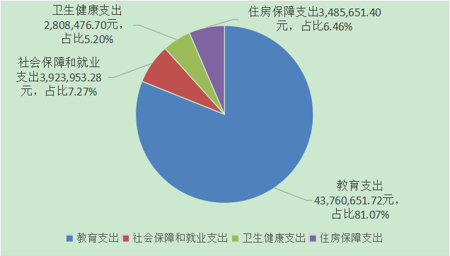 5.教育(类)支出43,760,651.72元,占一般公共预算财政拨款总支出的81.07%。主要用于保障我校全体教职工的工资、公务费、学生的高原生活费、营养餐资金、公用经费等支出。