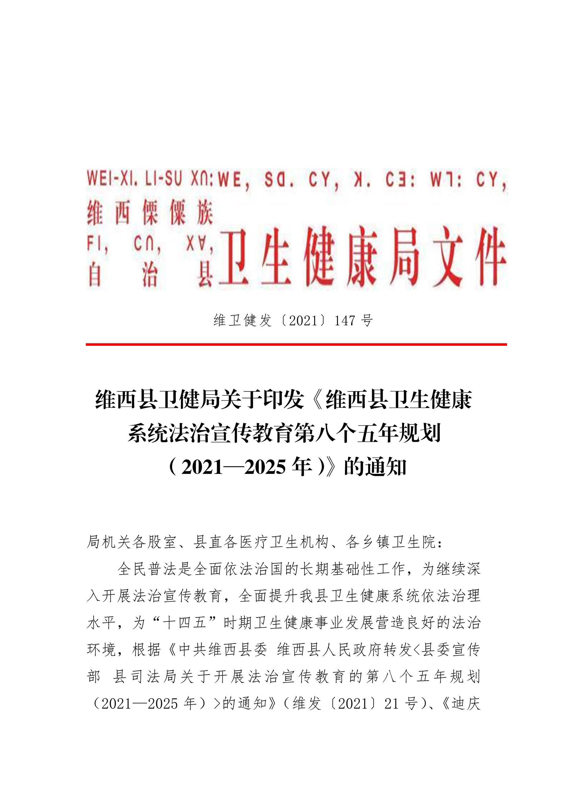 147维西县卫健系统“八五”普法规划