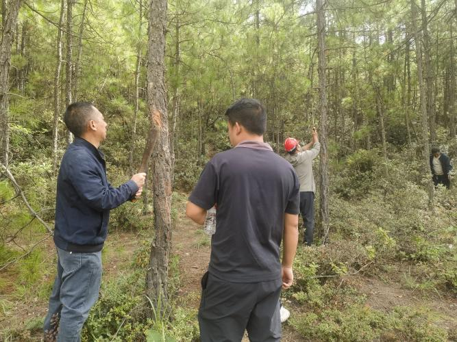 理论培训结束后,培训组带领全体学员前往永春乡拖枝村项目试点小班开展现场教学。通过实地标记和操作示范,直观讲解目标树选择与采伐边界划定方法,指导学员掌握抚育密度调控、幼苗幼树保护等实操技能。针对施工中可能遇到的地表扰动、干燥天气及火源管控等风险,现场演示了规范操作流程并提出了相应防控措施。参训人员分组进行实操演练,培训人员现场点评并纠正操作偏差,确保每位学员切实掌握关键技术。