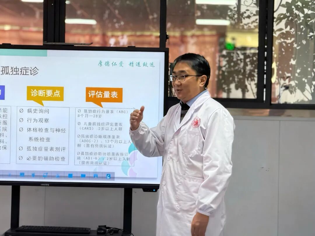 义诊结束后,舒霁坤专家围绕“孤独症干预”与“进行性肌营养不良全景解析”两大主题展开授课,系统讲解最新诊疗进展与实用康复策略,为妇保院医护人员带来前沿知识与技术启发。