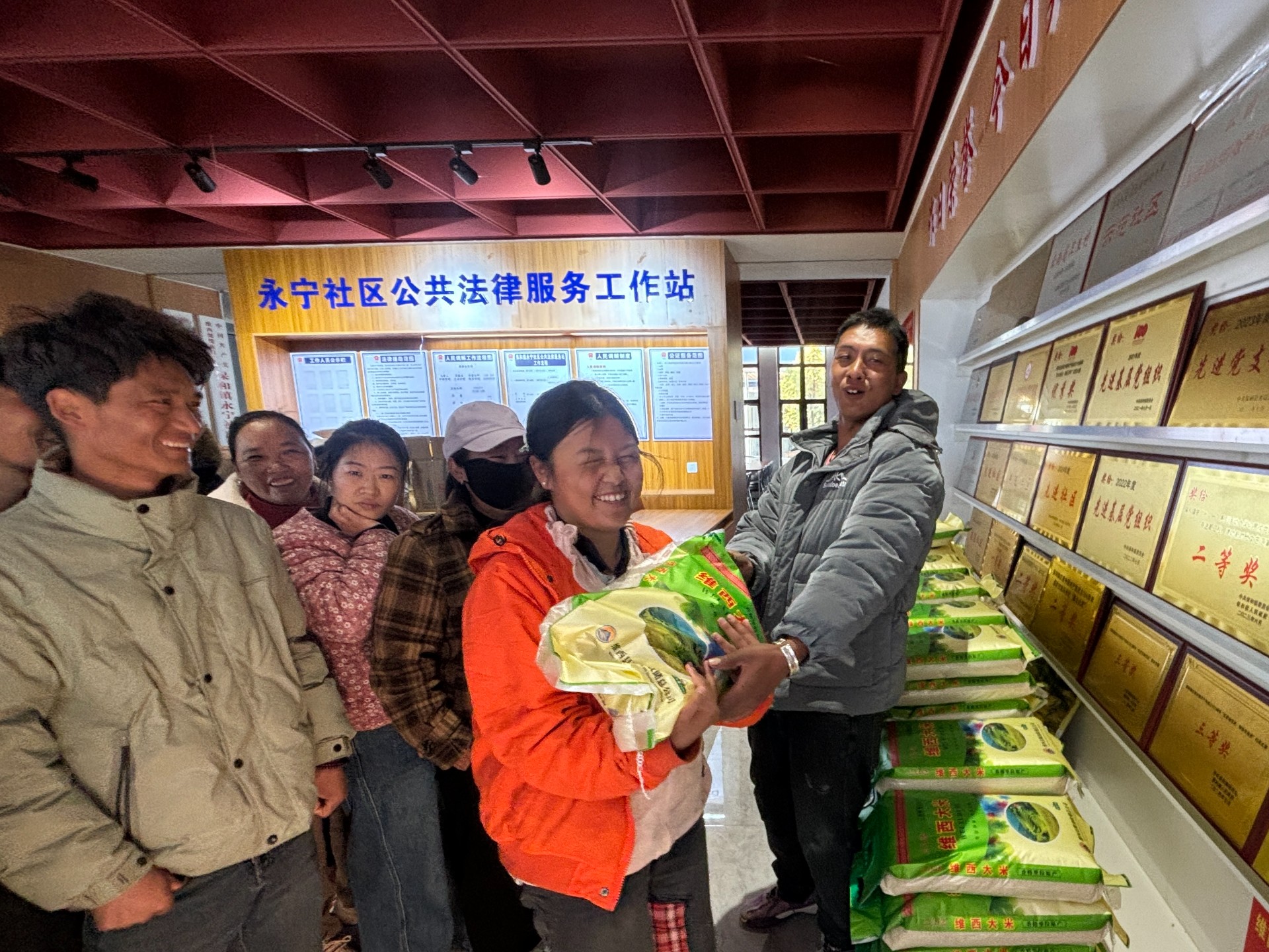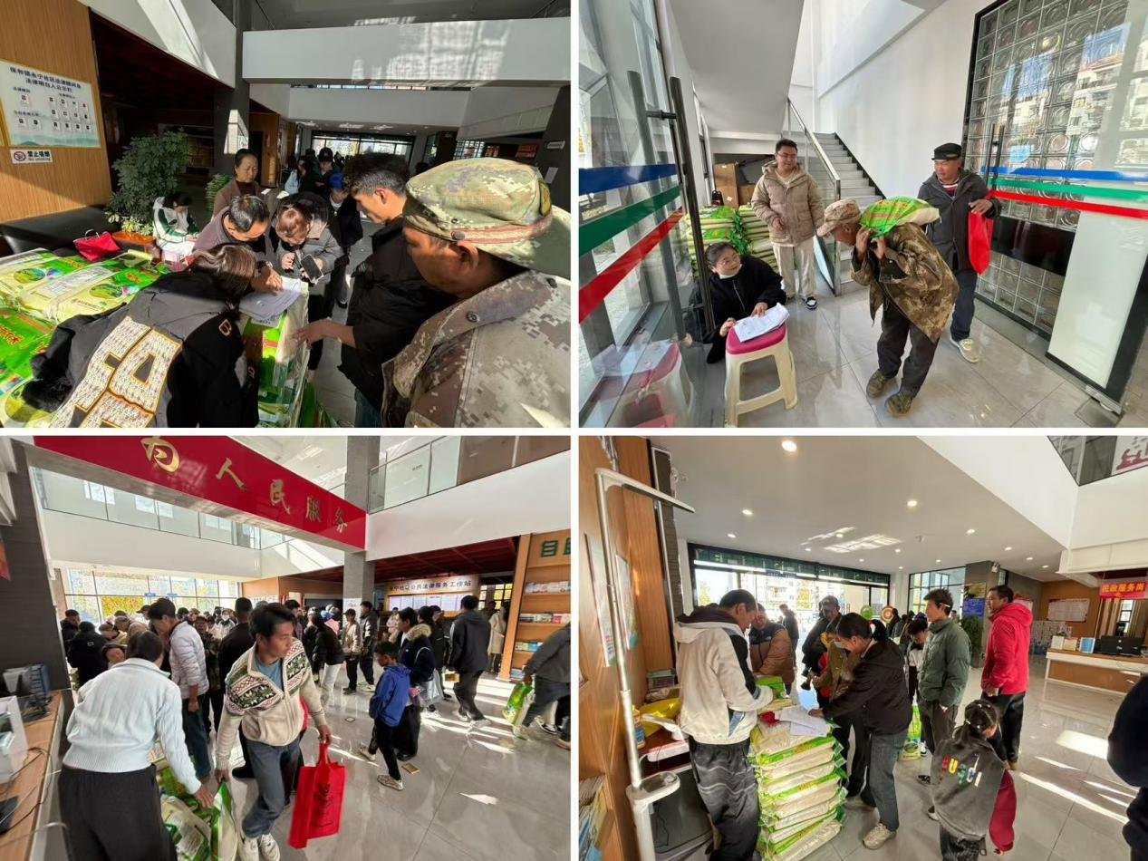 会后,社区组织开展“双重慰问”行动。一是定向关怀务工群体,向参会务工返乡人员发放洗洁精、洗衣粉、肥皂、纸巾等生活物资180份,传递“回家即团圆”的温暖。二是普惠保障搬迁群众,在各级各部门(民政局、机关事务管理局、应急局、红十字会、人社局等)的大力支持下,社区及工作队积极争取大米物资,对康恩家园搬迁群众实行全覆盖发放,每户发放一袋大米。社区工作人员、各党支部书记、妇女小组长全员上阵,分片分组搬运装卸、核对名单、有序发放,确保“不漏一户、不少一人”。