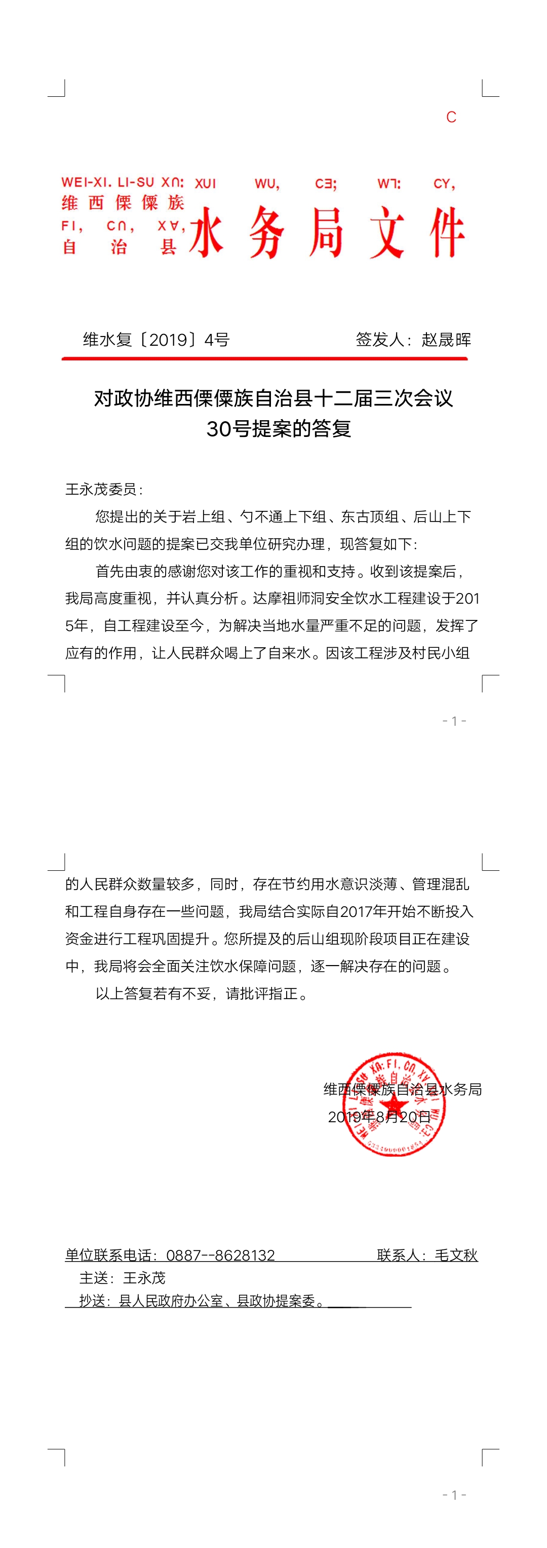 【政府信息】对政协维西傈僳族自治县十二届三次会议30号提案的答复