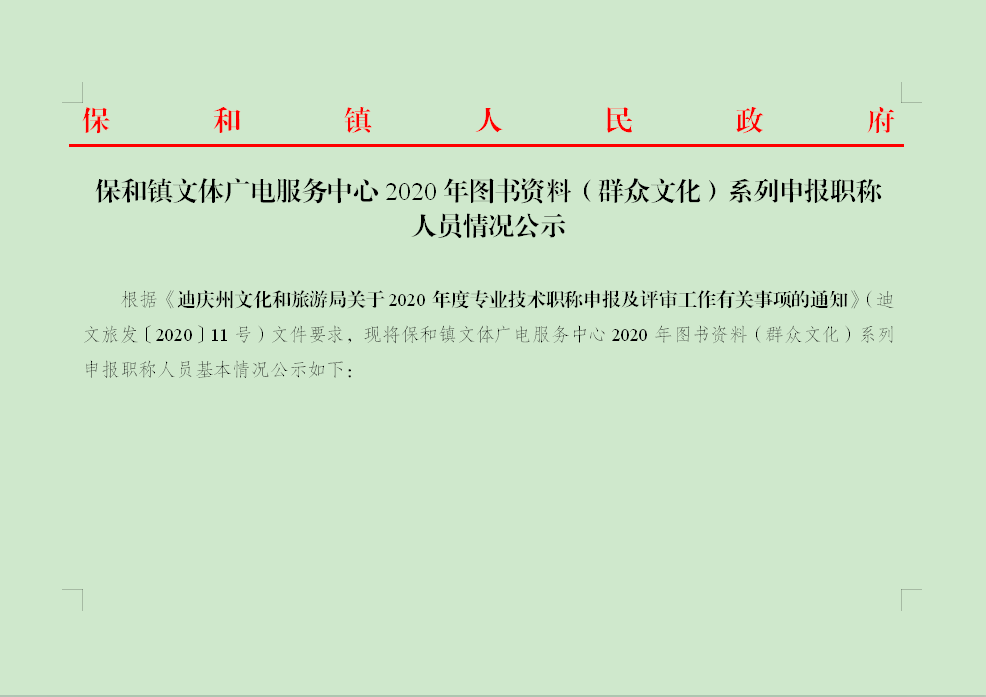 【保和镇】保和镇文体广电服务中心2020年图书资料(群众文化)系列申报职称 人员情况公示