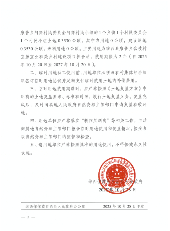 关于维西县康普乡岔枝村宜居宜业和美乡村建设项目拌合站临时用地的批复