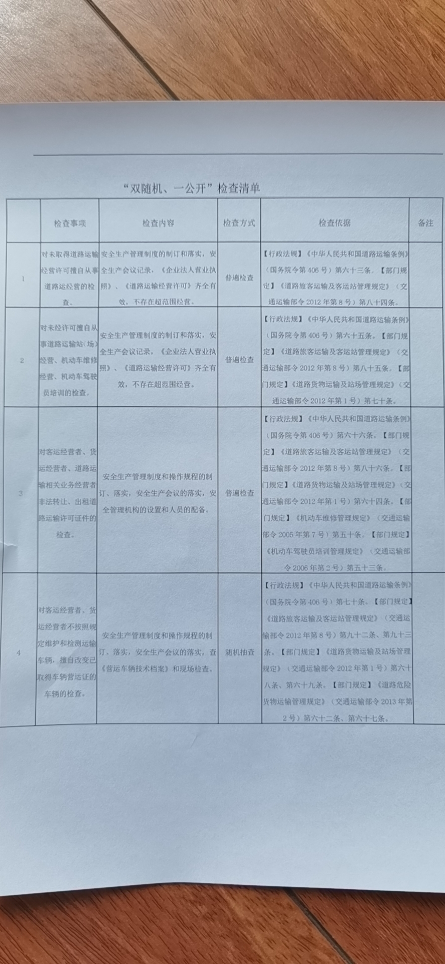维西县交通运输局“双随机、一公开”工作制度
