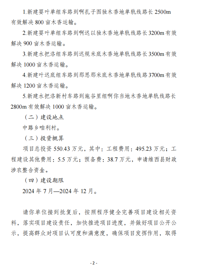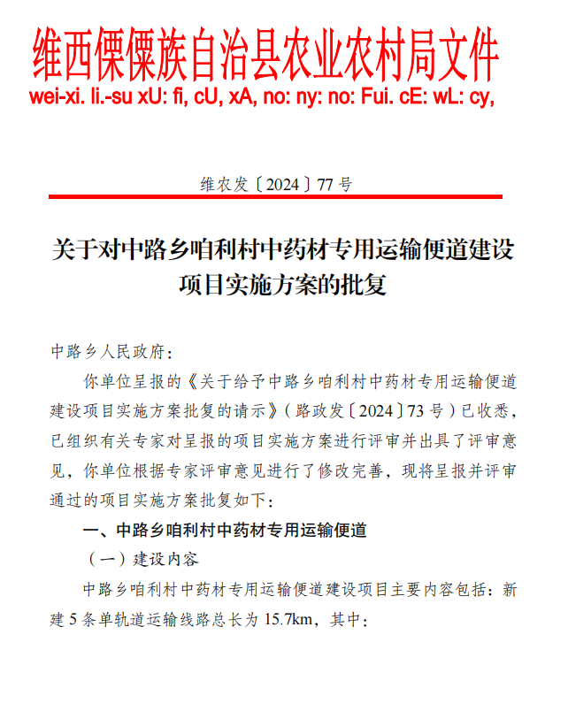 维农发〔2024〕77号 关于对中路乡咱利村中药材专用运输便道建设项目实施方案的批复(2).pdf