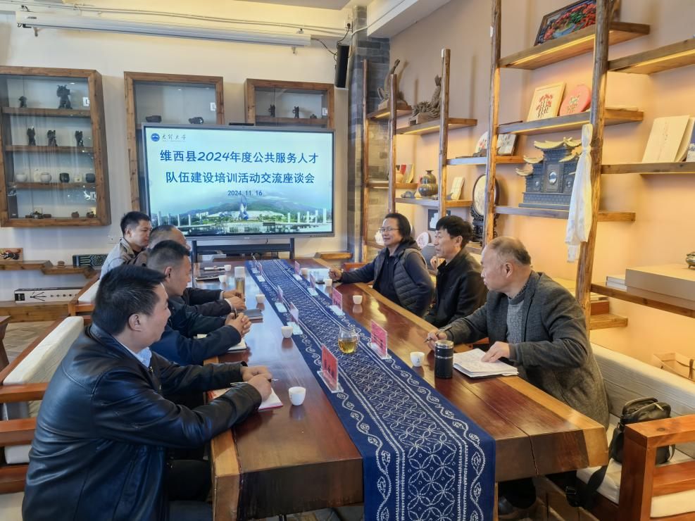 培训活动结束当天,维西县文化和旅游局、大理大学双方班子成员召开了座谈会,座谈会上,双方就可能的合作领域进行了深入探讨,在文艺人才培养、文艺作品创作方面,如何将维西县的特色文化元素融入到艺术作品创作中,探讨了学生实习实践、毕业设计项目合作以及共同开展文化资源研究的可能性。