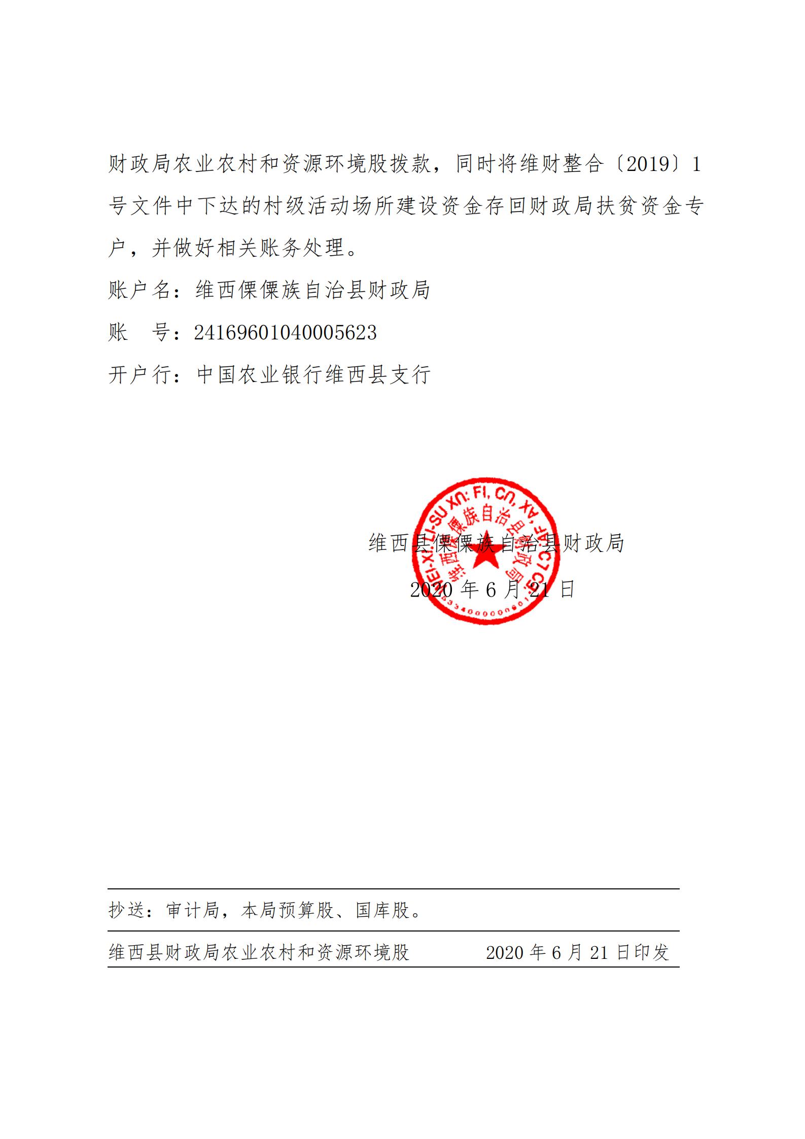 维西县财政局关于分配下达 2020 年村级活动 场所建设项目资金的通知