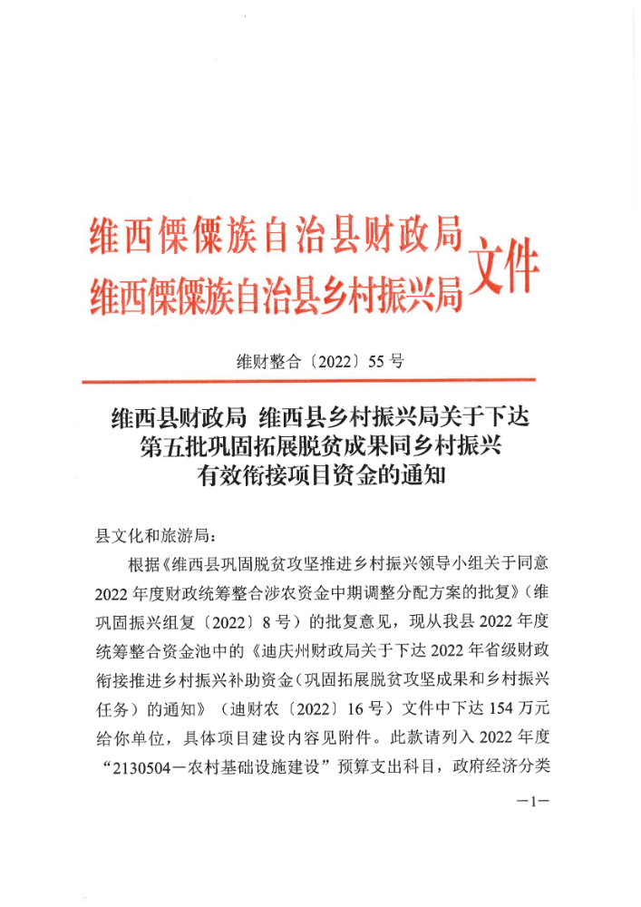 维西县财政局 维西县乡村振兴局关于下达第五批巩固拓展脱贫攻坚成果同乡村振兴有效衔接项目资金的通知