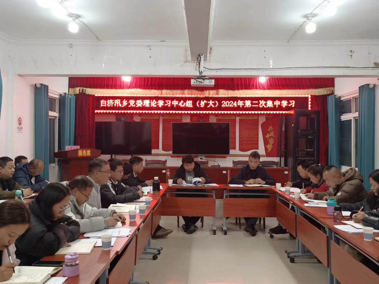 近日,白济汛乡党委理论学习中心组举行2024年第二次集中学习。会议由乡党委书记马雁主持,乡党政班子成员、各站所负责人、各村总支书记参加。