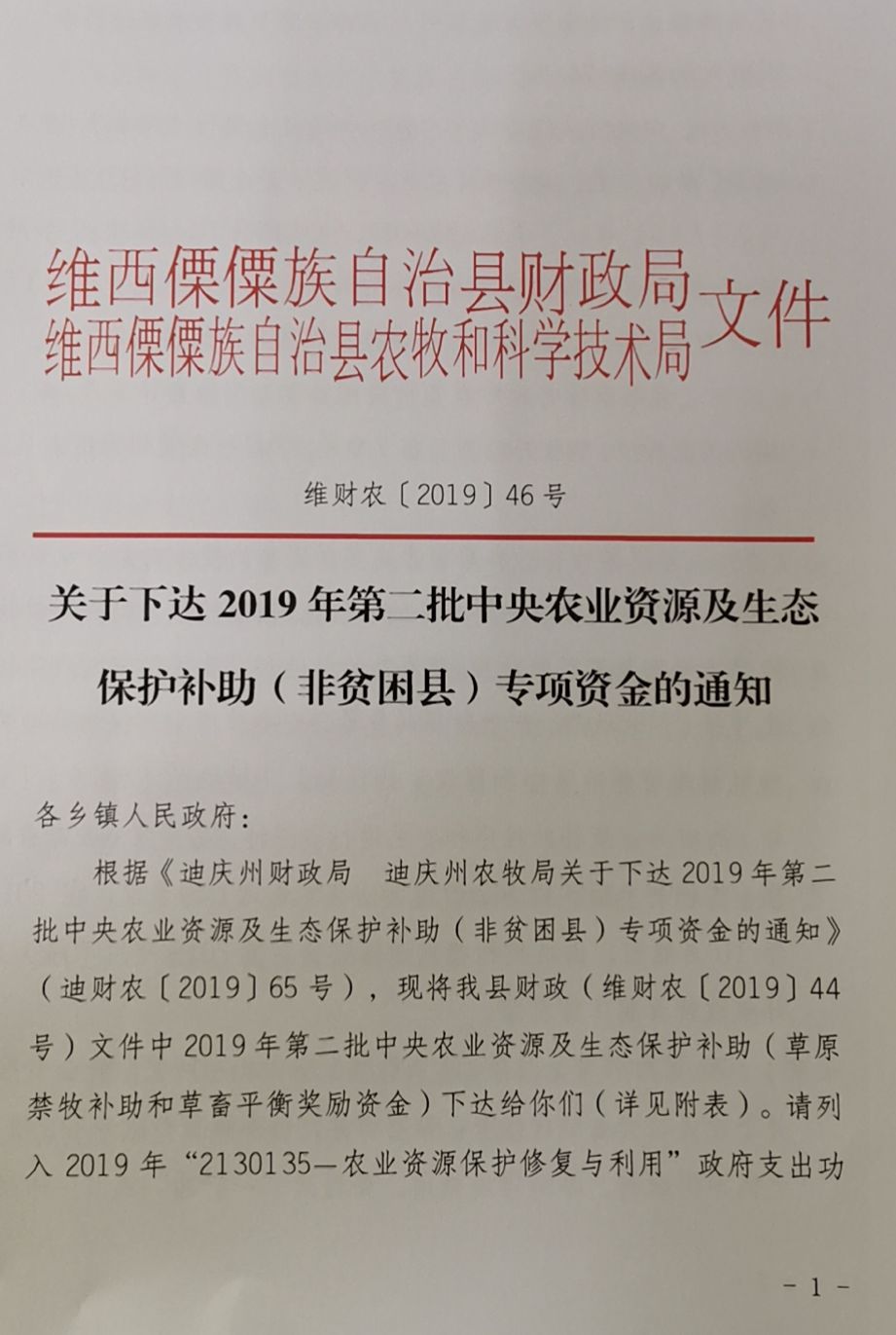 【信息公开】关于下达2019年中央农业生产发展资金(耕地地力保护补贴)的通知
