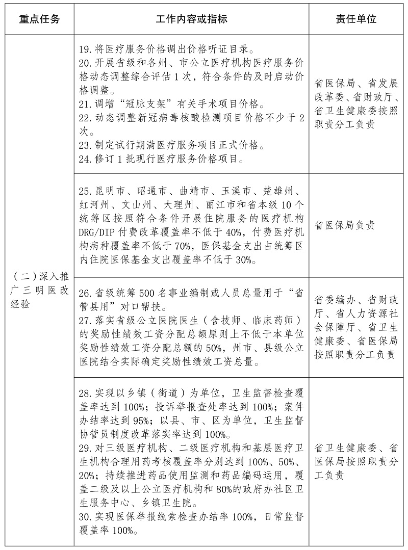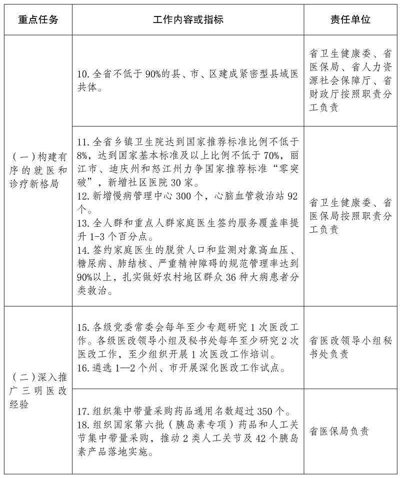 附件:云南省深化医药卫生体制改革2022年重点工作指标清单