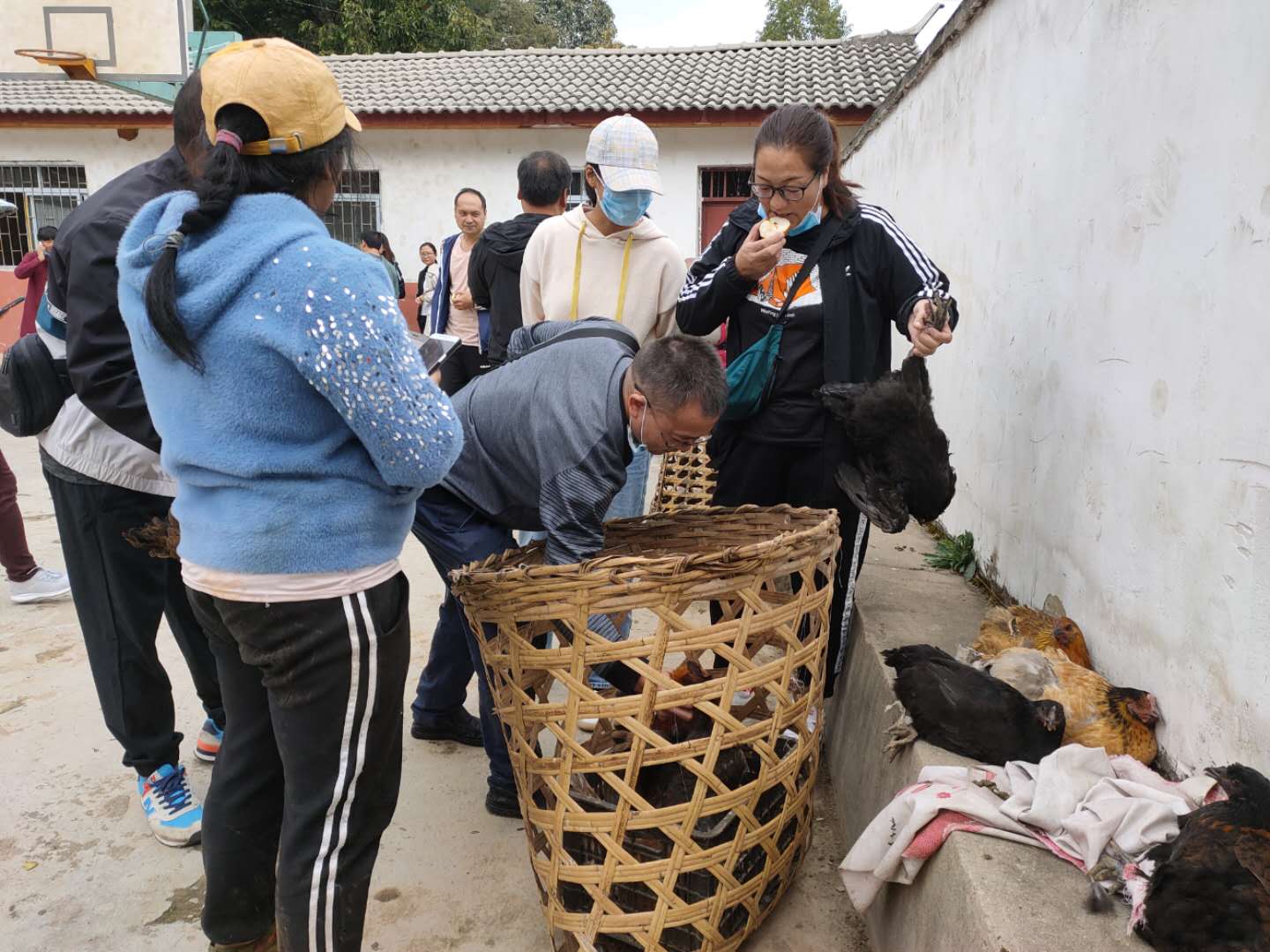 当天上午,扶贫干部以体验式消费方式购买了稗子洛村民小组46只土鸡、1200个土鸡蛋。