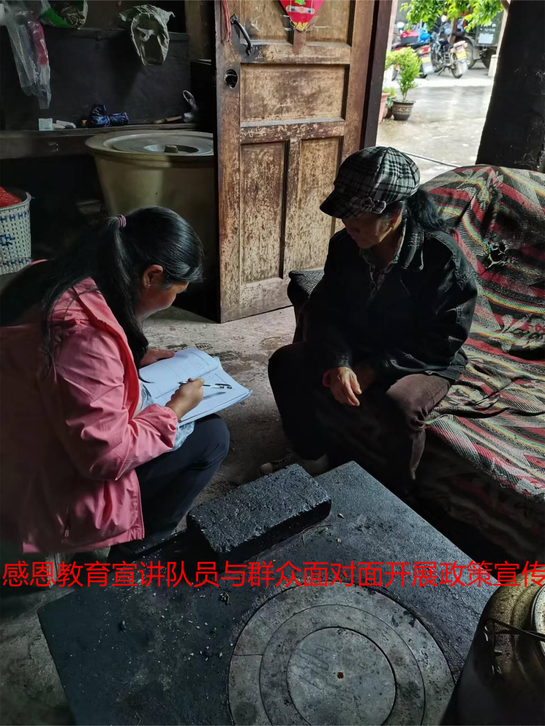 (感恩教育宣讲队员开展政策宣传。杨洪程)